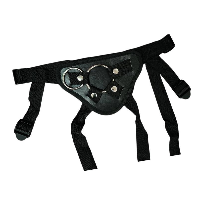 Cinta em couro em para protese com formato de pênis com ventosa e escroto.