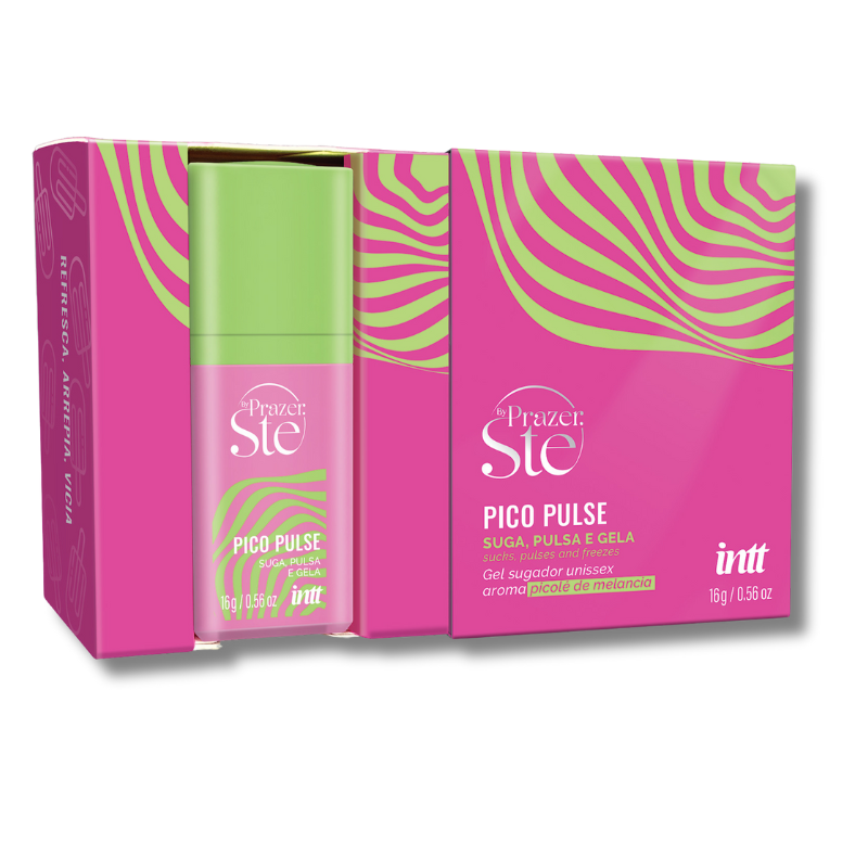 Pico Pulse Melancia by Intt – Gel estimulante unissex com efeito vibrante, pulsante e de sucção real; aroma de picolé de melancia; tecnologia de microcontração com jambu, óleo de copaíba e óleo de maracujá; fórmula vegana e dermatologicamente testada; 16 g; origem nacional